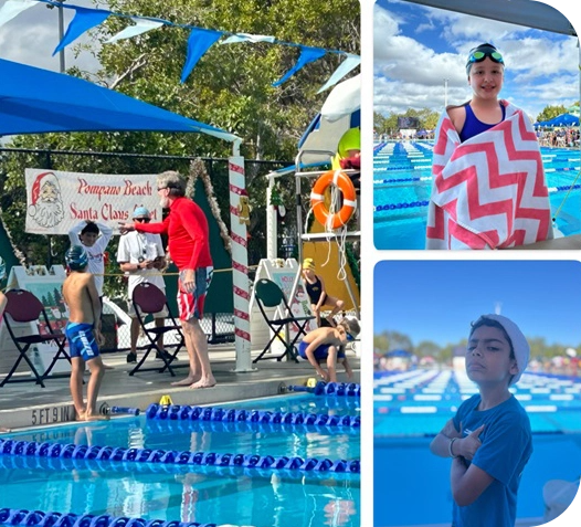 It was a beautiful winter morning in South Florida; the air was not freezing cold, but it wasn’t unbelievably hot like a native Floridian is used to. Although it was nice temperature to stay dry, the same could not be said about the weather when one is wet. For the Santa Claus meet, swimmers had two objectives to keep in mind—to swim their hearts out and to stay warm. With the help of some hot chocolate and a little bit of Santa’s motivation, their objectives became a bit easier to achieve. The Pompano Santa Claus meet was full of fun surprises and highlights. As swimmers raced against each other, they had the opportunity to watch Santa ride a helicopter and race against him. Swimmer Lorenzo Alberani raced against the jollyman and encouraged him throughout the race by giving him thumbs up and letting him know the wall was near. Alongside competing with Santa, both Lorenzo and Ellie Barbeau had some memorable highlights. Ellie swam the 50 Back and the 50 Breast for the first time and received a personal best on the 50 Free. Lorenzo received his first BB time on the 50 Fly, and personal best on the 50 Back, Breast, and Free. Despite a cold swim meet day, swimmers were able to leave the meet with a fun memory and knowing that their efforts in practice were making a difference.